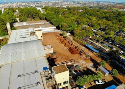 As obras tiveram início em 27 de fevereiro de 2025 e contam com um prazo de execução de 48 meses. O projeto prevê a construção de uma nova edificação integrada à atual Clínica Civil, com 5 pavimentos, além de áreas técnicas, reservatórios e casa de máquinas, totalizando uma área construída de 11.900,42 m². O empreendimento também contempla estacionamento com 1.326 m² e sistemas de água potável de 336 m², garantindo infraestrutura completa para o funcionamento da unidade.